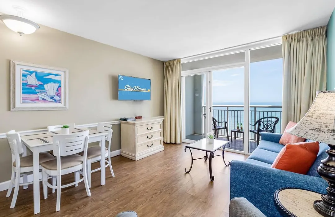 Crown Mare By Staymareni - Oceanfront King Suite includes self-catering facilities, such as an equipped kitchenette with tea and coffee making equipment, a fridge, and kitchenware. Staying at Crown Mare By Staymareni - Oceanfront King Suite, guests are 15 minutes' drive from Myrtle Beach International airport. An indoor pool at the apartment will contribute to a more enjoyable stay. Guests can relax with a drink on a patio while enjoying seaside views of the sea.